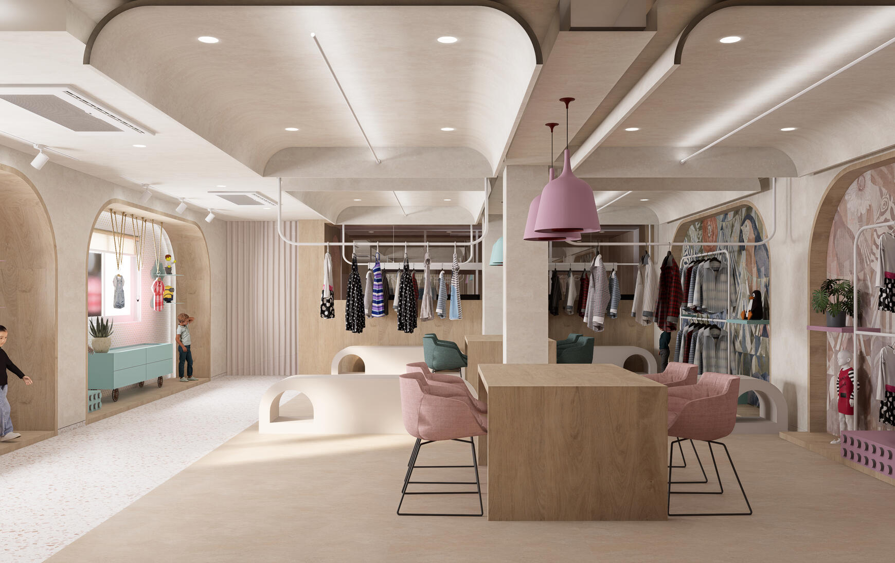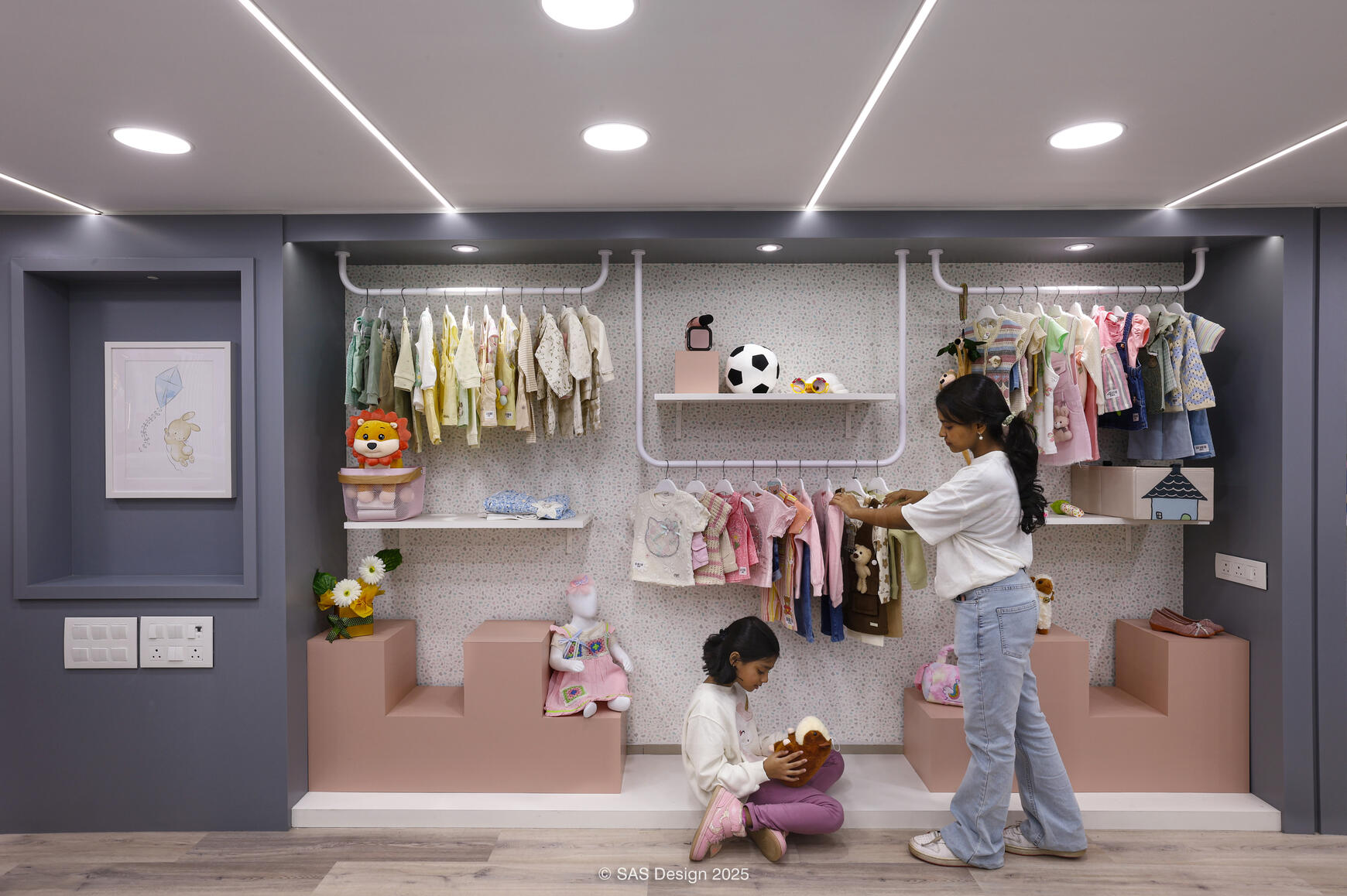 A kids apparel store newly launched in Mumbai needed pastel therapy with colour blocking. Keeping the old shell the space was given a new defination.