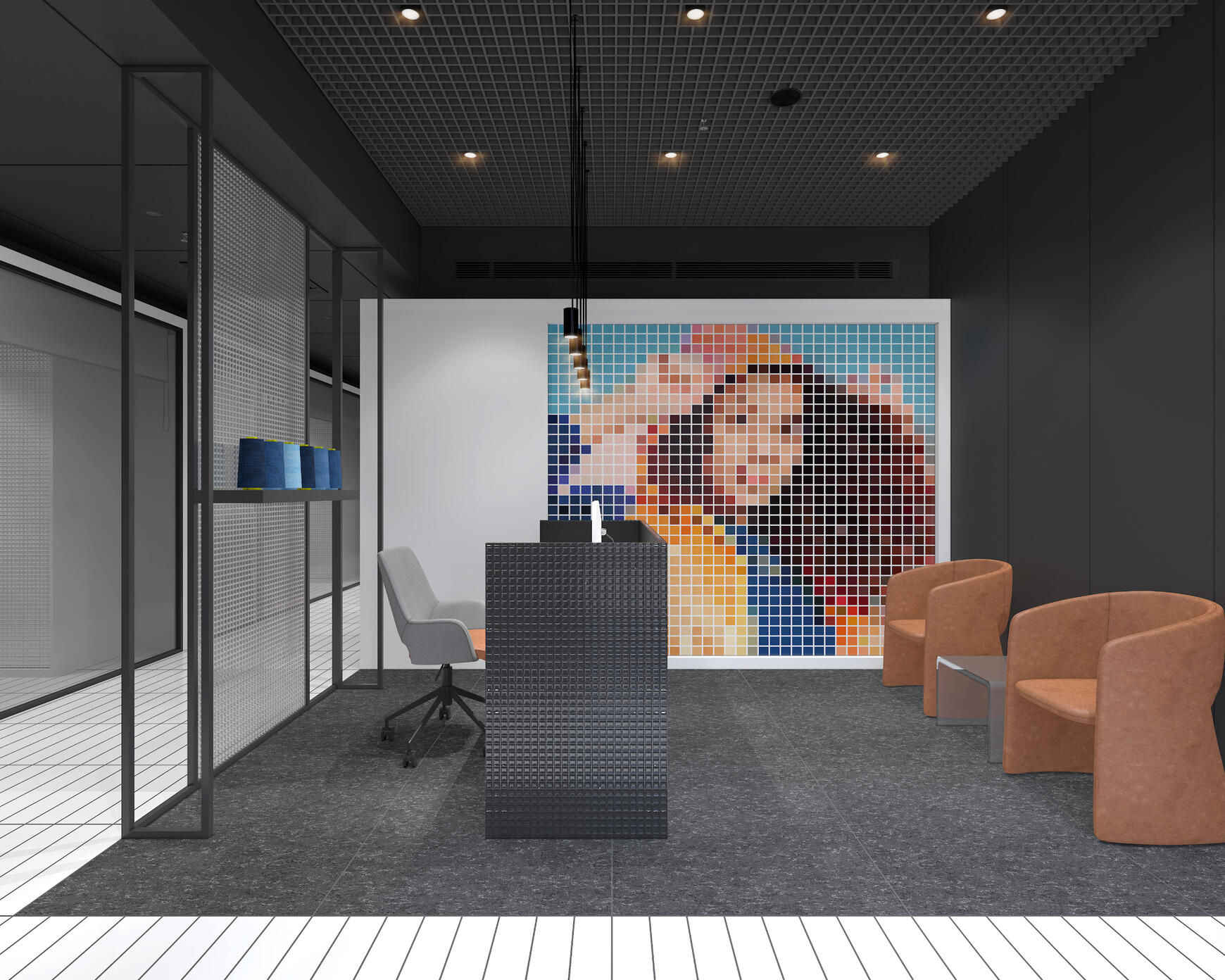 Office space for a textile industrialist showcases the Pantone theory weaving through the carefully designed spaces.