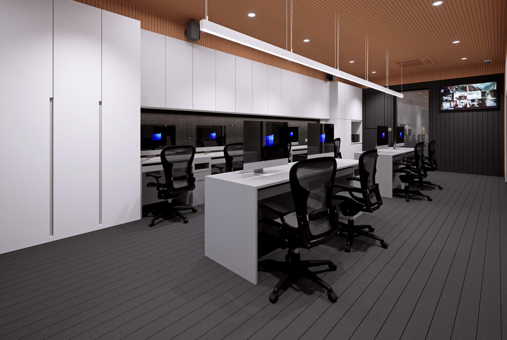 This design choice aims to conceptualize an environment that can be regarded as a hub for innovative ideas, which it is designed to provide. It encompasses the social, physical, psychological, and spiritual dimensions of its users. Ample windows throughout the area allow natural light to permeate the interiors, fostering a bright and open atmosphere that promotes productivity and enhances well-being. The connection to the exterior contributes to a lively ambiance.
