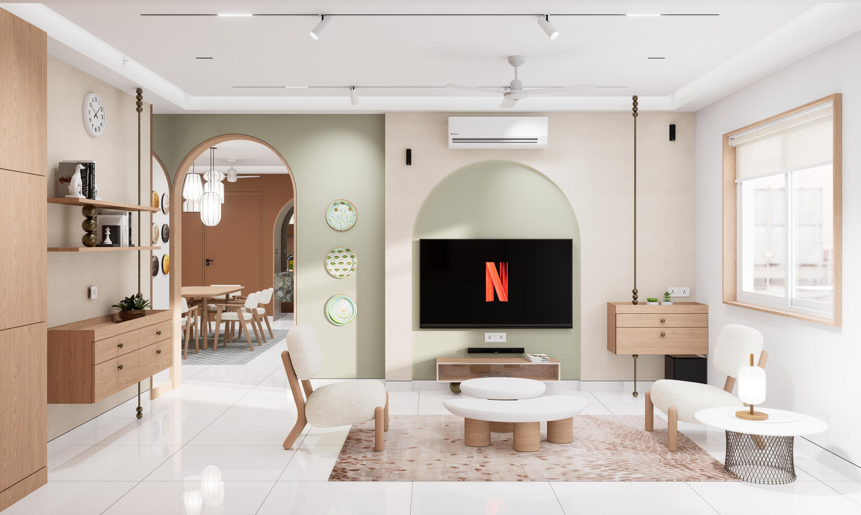 A 2 bhk apartment designed for an family of Mumbai who truly believed in simplicity. A simplistic approach with a color tint elevated the space feel. As designer we ensure that every space has a unique soul and is treated specially. Following the Moroccan color palate, the design indented to provide the house a style no less than a celebrity home. The shade of blush flows through the house tying the spaces while the wooden floor brings the desired coziness and comfort.
