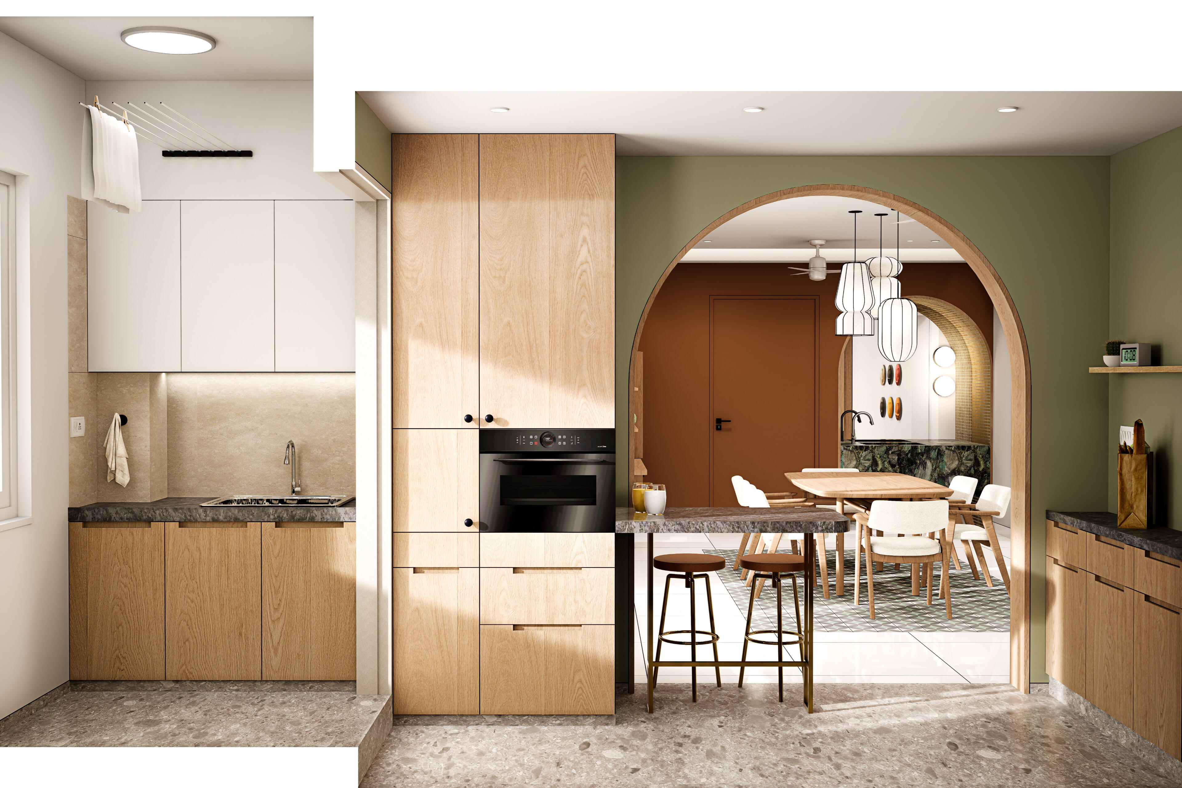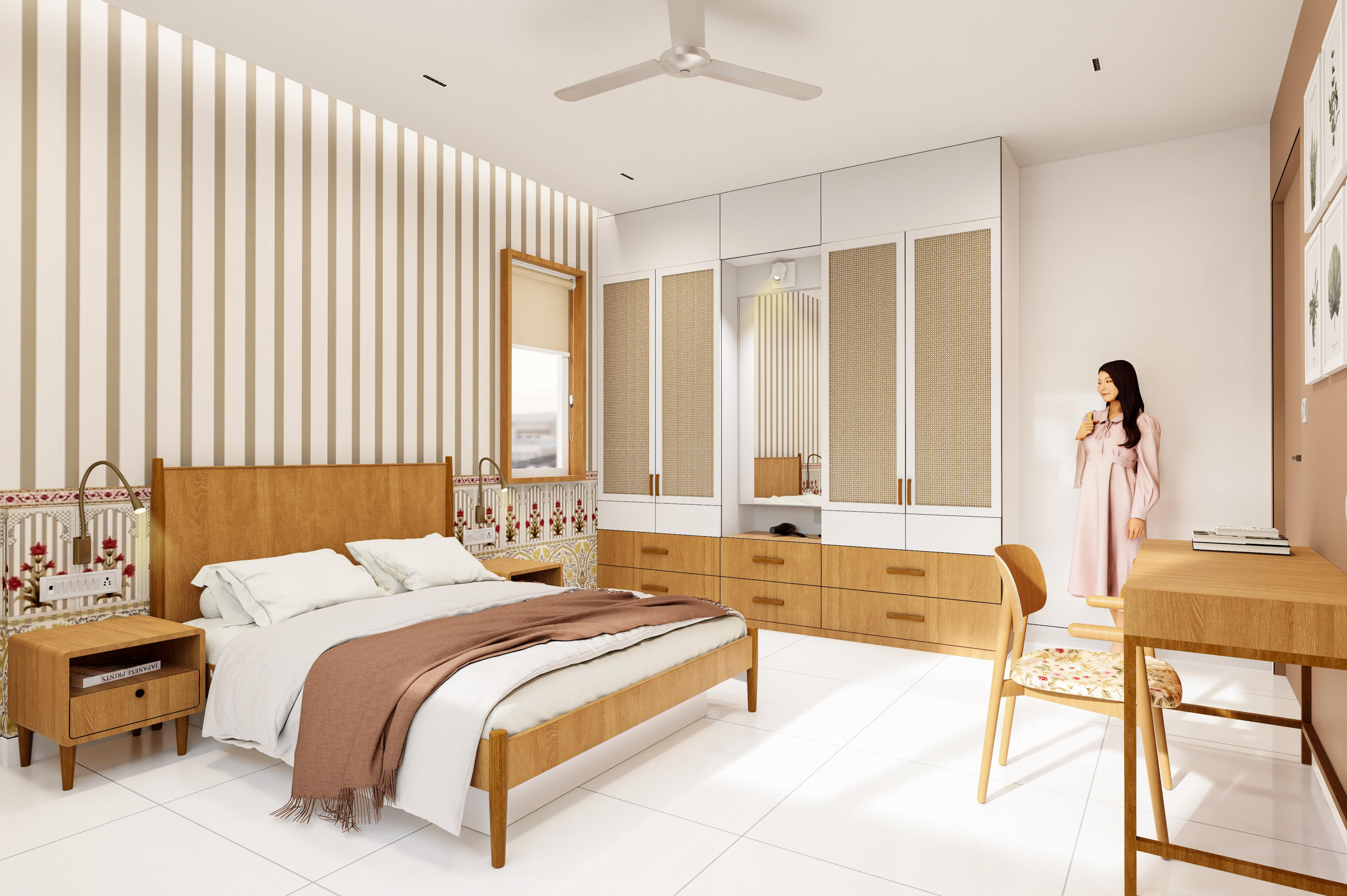 A 2 bhk apartment designed for an family of Mumbai who truly believed in simplicity. A simplistic approach with a color tint elevated the space feel. As designer we ensure that every space has a unique soul and is treated specially. Following the Moroccan color palate, the design indented to provide the house a style no less than a celebrity home. The shade of blush flows through the house tying the spaces while the wooden floor brings the desired coziness and comfort.