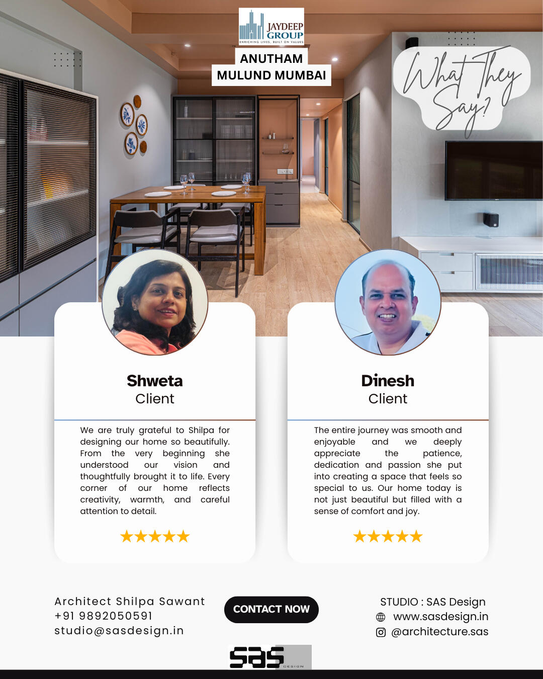 SAS Design is a Design consulting studio focusing on ingenious design solution, including remodeling and new construction. It intends to offer simple solutions after absorbing the different kinds of information & choices. It encompasses the austere aesthetic of minimalism while looking forward to the cutting edge challenge with an innovative way to lead our future living.Architect Shilpa Sawant obtained her professional degree from the esteemed Sir, J.J. College of Architecture, Mumbai. Coming from a rich family history of association with the architectural industry, design & Aesthetics appreciation came to her naturally. As a child she was always inclined towards paper art from early age which helped her express her creative imagination and ideas which in turn led her to the design field. Being one of the founder members of Astitva Architects with her brother & having worked with renowned architect Mrs. Brinda Somaya at S & K Consultants, she started her own practice under the brand SAS Design with the philosophy of commitment to design excellence.With over a decade of professional experience in the architectural industry, she has gained diversified knowledge and exposure of the various facets of the practice. She has garnered rich experience while executing numerous interior and architectural projects in different geographical locations. Many of her works, including her own house, have been covered by prestigious publications. She has also been a visiting faculty member for Interior Design in the esteemed Sir, J.J. College of Architecture.