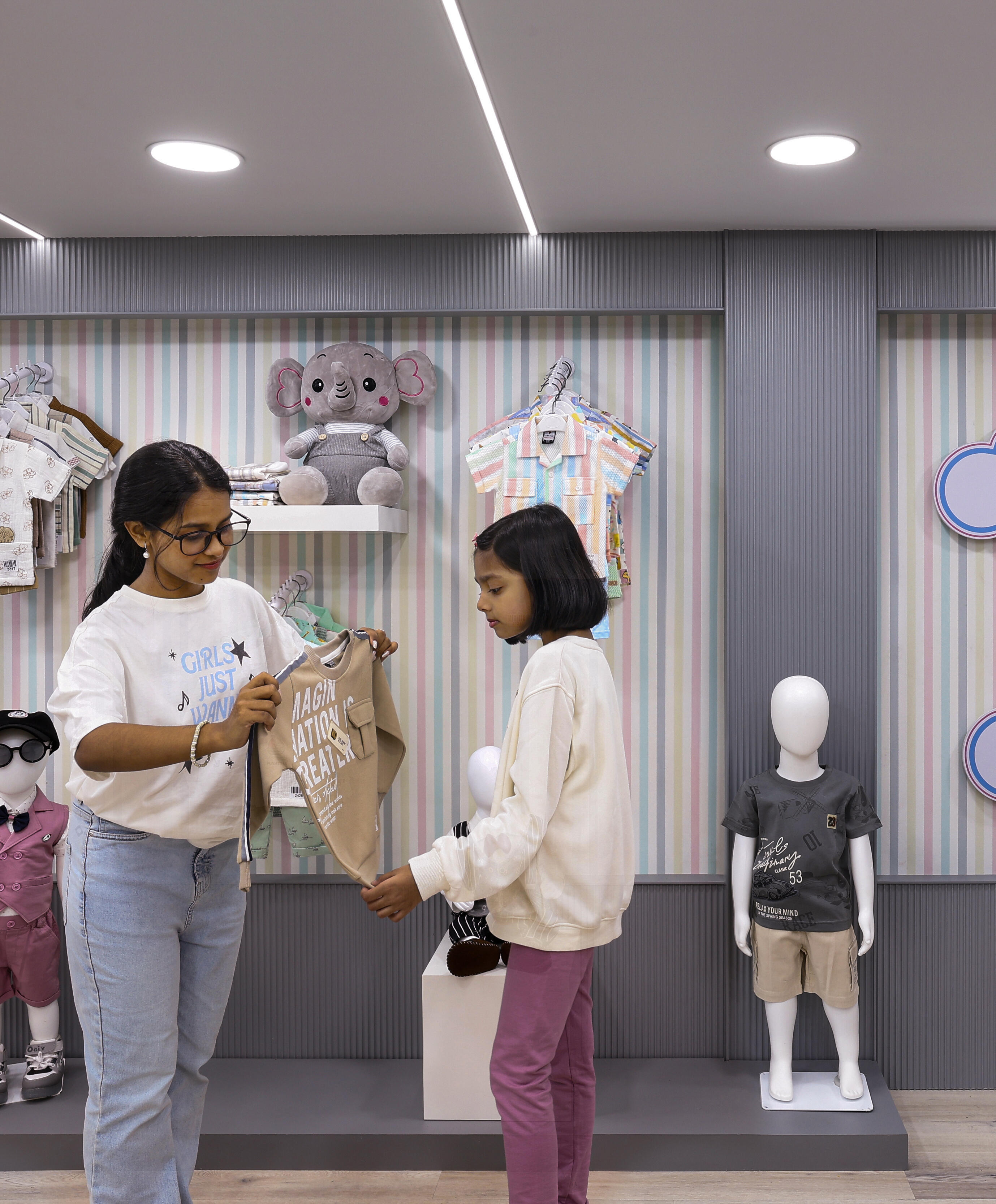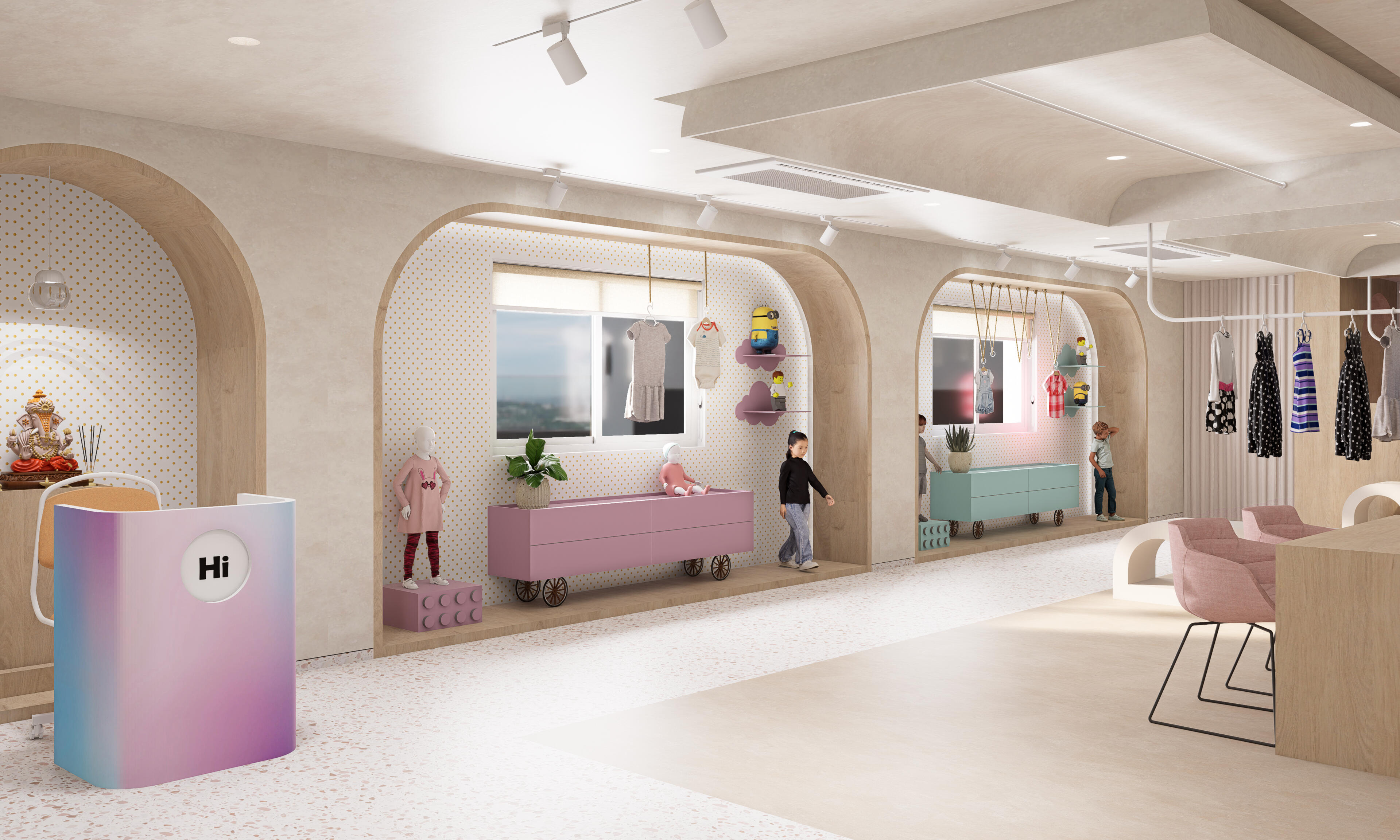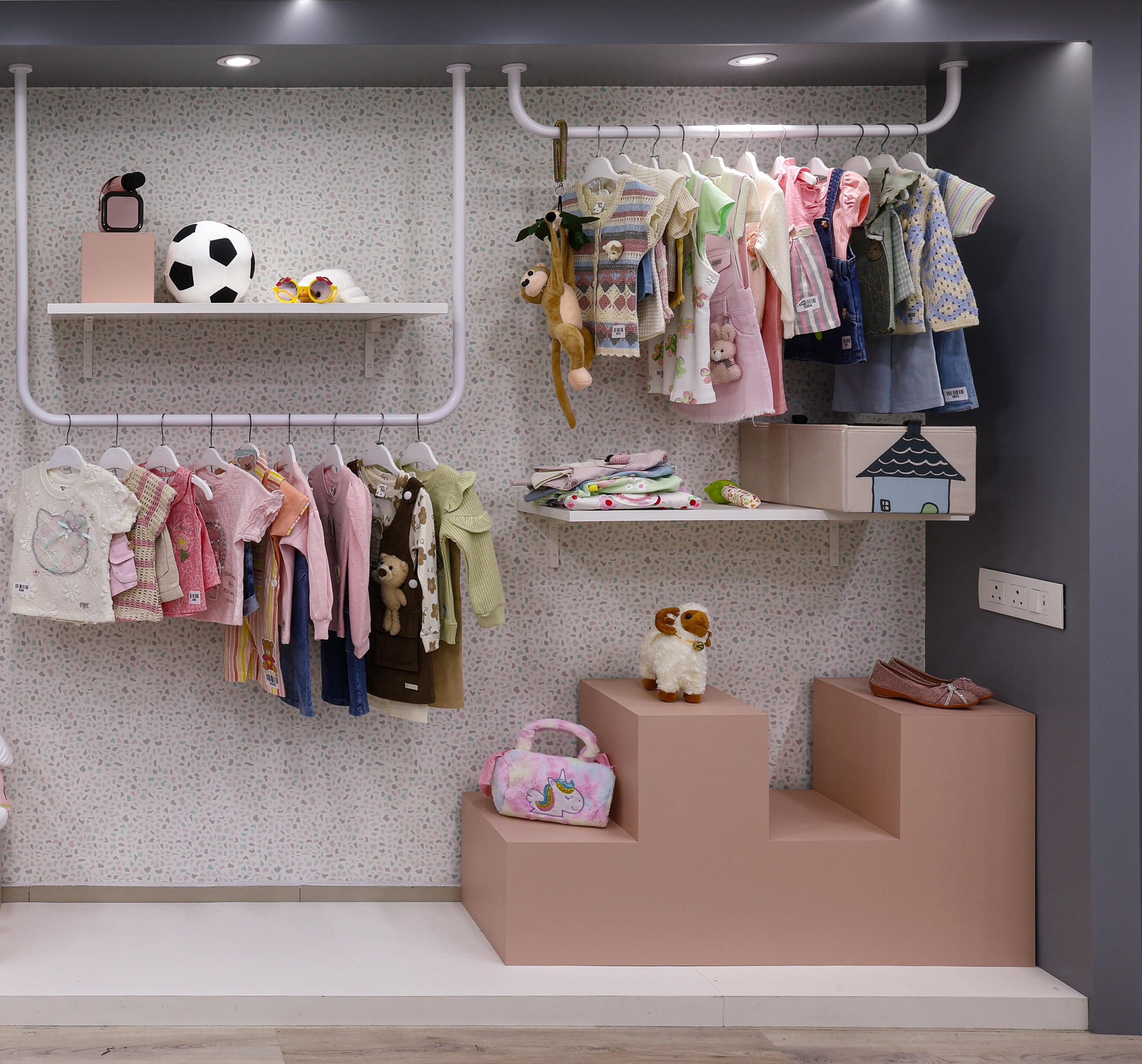 A kids apparel store newly launched in Mumbai needed pastel therapy with colour blocking. Keeping the old shell the space was given a new defination.